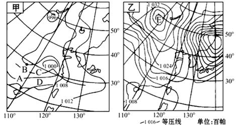 1、综合题 甲、乙两图分别为同一地区不同时间的等压线示意图,读图完成下列各题。(9分)