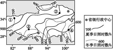小题1:下列四地中冬、夏季日照时数差异最大的是( )
