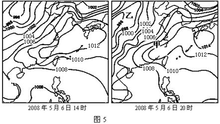 4、单选题 图5是亚洲东部某区域两个时刻的近地面等压线图(单位:百帕),据此回答下列各题。