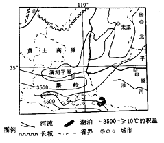 (1)比较渭河平原和秦岭≥10℃积温的差异,并分析形成这种差异的主要原因。(4分)