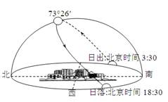 3、单选题 读某地太阳视运动图(一年中最大正午太阳高度为73°26′),