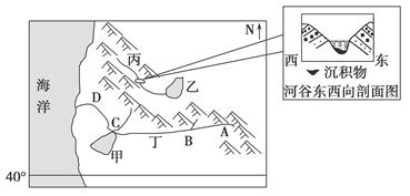 【小题1】从图示河谷剖面图分析,西岸沉积,东岸侵蚀,表明河流流水偏向东岸,因东岸为左岸,所以判断河流位于南半球;又因非洲和大洋洲西岸纬度低于40°S,因此判断图示地区位于南美洲。故选C。