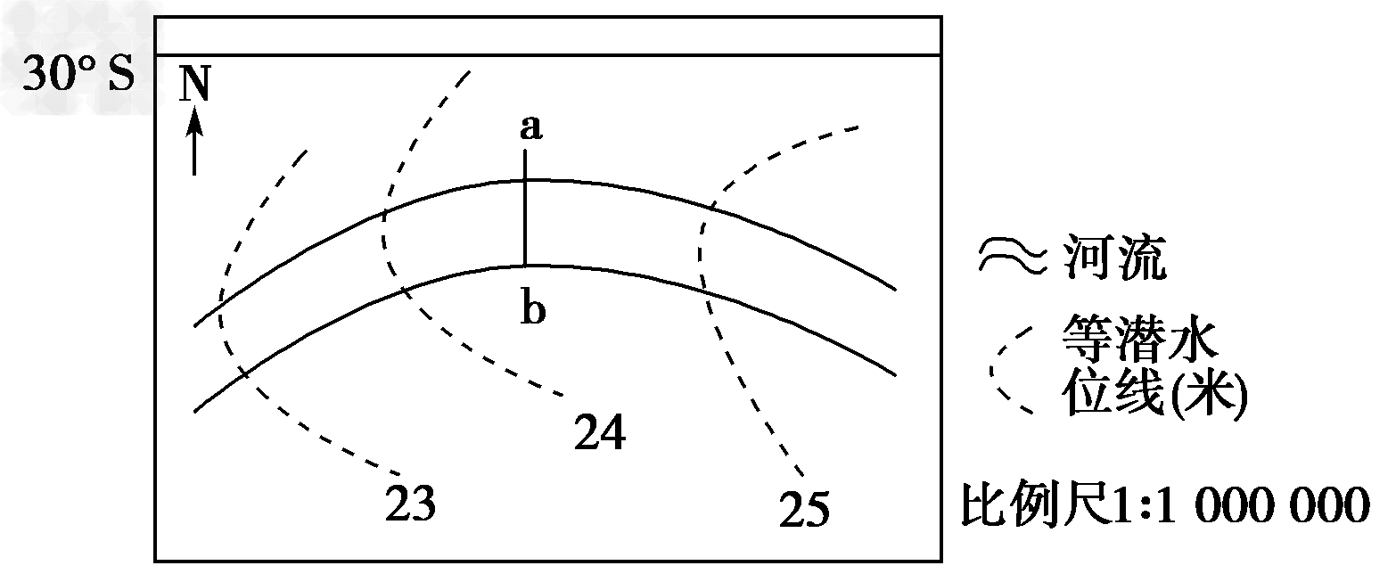 2、单选题 下图为某大陆西岸一段河流在某季节的等潜水位线分布图,读图回答1~2题。?