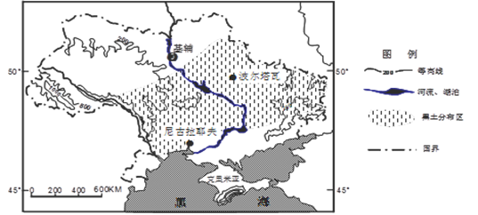 材料一:克里米亚是黑海北部海岸的一个半岛。半岛的海岸线形成几个海湾和良好的天然港口,是俄罗斯从黑海进入地中海,进而进入印度洋、大西洋的重要窗口。下图是乌克兰地形及黑土分布图。
