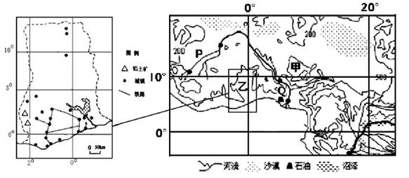 材料三 图中甲国是非洲最大的石油生产国和世界第六大石油出口国,石油出口收入占该国财政总收入的83%。但“黑金"并没有给这个国家带来希望,却遭受“石油的诅咒”:在过去35年里,石油收入超过4500亿美元,却被联合国列为世界第26位的最贫穷国,其失业率高达50%,60%的人口日生活费不足l美元,而且还是是世界上汽油最短缺的国家之一。