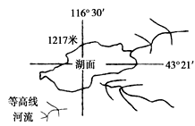 【小题1】从图中所给的经纬网可知,该地为内蒙古。从等高线与河流的关系可以看出,湖泊东北部有河流注入,东南部有湖水流出,因为流水可以更新,所以,湖水为淡水,属于外流湖。