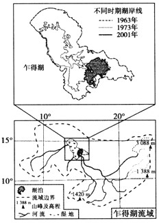 1、单选题 下图是非洲乍得湖流域图,读图,回答1~2题。