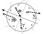 2、单选题 图示圆圈为台风系统,该系统分成四个区域,短箭头表示风,长箭头表示台风整体移动方向,回答下列各题。