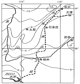 (2)图中丹江口水库出口处和北京两地的平均温差约为_______℃,其主要原因是_________________。