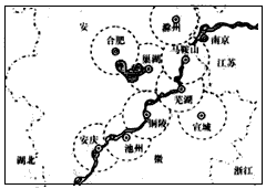 3、综合题 ??? 2009年1月,国务院批准设立“皖江城市带承接产业转移示范区”(下图),参与泛长三角区域发展分工,承接沿海地区产业转移。据此回答下列问题。