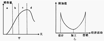 2、单选题 下图中甲是产业典型产品周期示意图,乙是产品生产环节价值链图,读图完成下列各题。