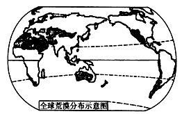 2、单选题 读全球荒漠分布示意图,回答(1)——(2)题。