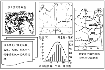 (1)由图中资料,分析推断该区域商周时期与现在气候特征的差异。