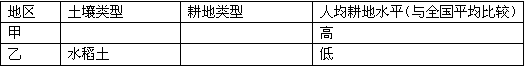 (2)从土地利用方面比较甲、乙两地,完成下表。