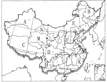 3、综合题 阅读中国政区空白图,完成下列要求:(每空2分,共24分)