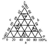 2、单选题 读三角坐标图(如下图),回答1~2题。