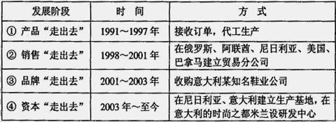 1、单选题 表1示意我国沿海某鞋业公司全球化发展的历程。读表l,完成3题。