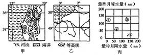 4、综合题 读下图中的甲、乙、丙三幅图,分析完成下列各题: