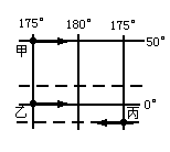 4、单选题 读图,甲、乙、丙三艘轮船同时沿图示方向以相同的速度驶向180°经线,则下列说法正确的是