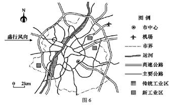 5、单选题 如图示意某城市交通、工业区的分布。读图,完成问题。1.该城市传统工业区空间形态形成的主要原因是2.该城市新工业区的区位优势在于接近