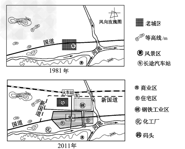 (3)从环境因素考虑,分别指出该市钢铁厂和化工厂的布局是否合理,并说明原因。