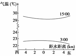 1、单选题 我国南方某地新建一小水库,某日两时刻测得水库及东西两侧气温分布如图所示,据此回答下列问题。