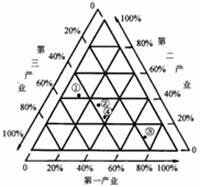 3、单选题 下图“表示①②③④四个地区三大产业的就业构成”,读图回答: