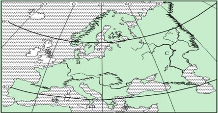 5、综合题 读欧洲简图,回答问题。