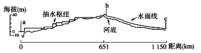 4、综合题 读“我国南水北调工程某输水干线纵断面示意图”,完成下列问题。