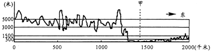 2、单选题 读“我国某地区沿某一纬线的地形剖面示意图”,判断回答下列各题。
