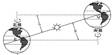 【小题1】PQ表示地球公转轨道上的两个特殊点,则图中字母L和S代表的角的度数为( )