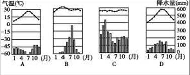 小题2:乙地位于赤道与南纬10°之间应为热带雨林气候图中A图雨热不同期,为北半球地中海气候;B图终年高温,降水量集中于夏季,为北半球热带草原气候;C图终年高温多雨,为热带雨林气候;D图最低月温在0°C以上,降水集中于夏季,为亚热带季风气候。