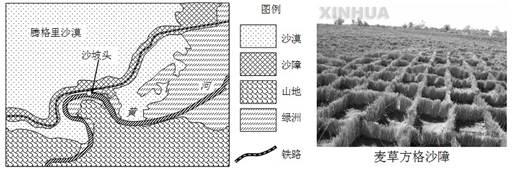 单选题 包兰铁路自包头至兰州,全长990公里,全线有140公里在沙漠中穿行。其中在中卫和干塘间经过腾格里沙漠(如图所示)。所采取的防沙、治沙措施,曾获1987年国家科学技术进步特等奖。完成问题.1.采用麦草方格沙障的方法用来防沙、治沙,是因为2.图中绿洲在发展种植农业的过程中,最有可能出现的农业生态问题是