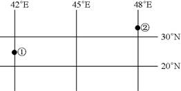 2、单选题 下图示意了世界某区域的经、纬线分布状况。据此回答下列问题。1.图中①地较②地的地方时2.图中①、②两地所在的时区是3.下图为一条自西向东流经①处的河流,河中有一处自然形成的沙洲。该沙洲最可能位于