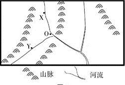 1、单选题 图为某研究性学习小组所绘的“25°N附近某小区域示意图”,为正确标注该图的指向标,同学们测得O城6月7日日出、日落分别在X、Y方向。读图完成小题。