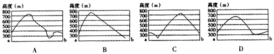 【小题3】小明同学沿a→b剖面线绘制的地形剖面图,是下图中的( )