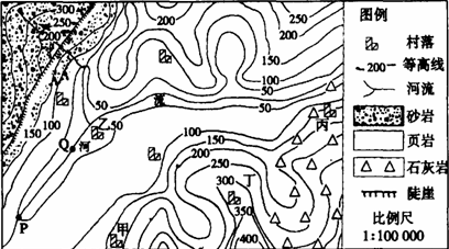A.PQ段的河流自东北流向西南,灌溉条件便利
