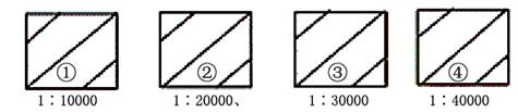 4、单选题 下面四幅等高线图,等高线的数值皆由左上方向右下方递减,且等高距皆为50米,则其坡度由大到小的排序是(?)
