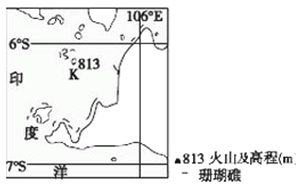 小题3:本题不仅要考生掌握岛屿的地理位置,还应清楚板块的范围。根据K岛的位置和板块界线的分布判断,K岛位于亚欧板块与印度洋板块界线附近,而K岛位于亚欧板块上,所以应该在亚欧板块与印度洋板块界线的北侧。故选C。
