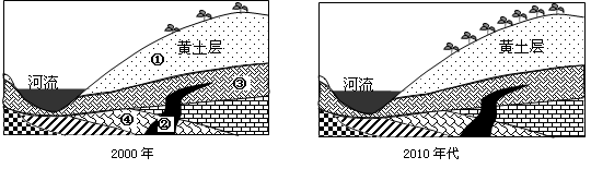 2、单选题 下图为某河流域(局部)不同时期地质剖面示意图。读图完成下题。