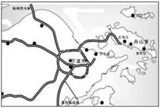 单选题 投资130亿元的浙江舟山跨海大桥于2009年12月25日试通车,舟山进入“半岛时代”,这座富裕的岛屿的生产力也将得到第二次大解放。读下图,回答题。