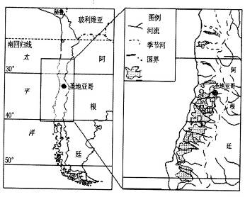 材料一 智利地形分为东、中、西三部分,中部的陷落谷地冲积物深厚,这里是智利主要的葡萄生产区,其生产规模很大。