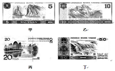 3、单选题 钱币被称为“国家名片”,人民币则是中国的名片。在已经发行的数套人民币中,我国一些著名的风景被相继印在了它们的背面。据此回答下列各题。