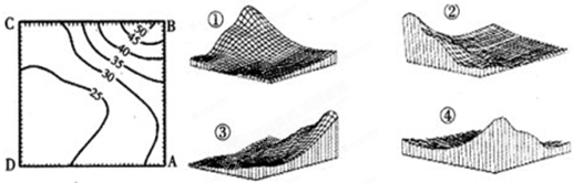 ͼÖеȸßÏßÖÐA ¡¢B ¡¢C ¡¢D Ëĸö¹Û²âµãËù¼ûµ½µÄÆð·üÐÎ̬ÒÀ´Î¶ÔÓ¦µÄÊÇ???