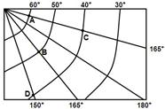 (2)A位于 半球(东、西),C位于 半球(东、西),D点位于 半球(南、北)。(3分)
