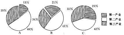 (2)C 图代表的地区经济发展速度在三个地带中处于第_____位,其产业结构存在的主要问题是_______