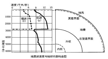 1、单选题 读“某地地震波速度随深度的变化图”,回答1~2题。