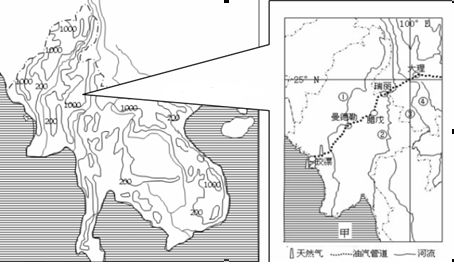 (3)从自然条件角度评估中缅油气管道建设难度,评价该管道的建设对缅甸经济发展的意义。(12分)