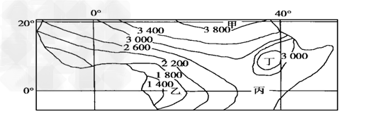 4、单选题 读下图某区域年日照时数等值线图,回答1-2题。