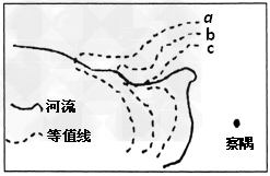 5、单选题 下图为雅鲁藏布江地区的等值线分布示意图,其等值线的数值c>b>a,读图回答1—2题。1、等值线不可能反映的是